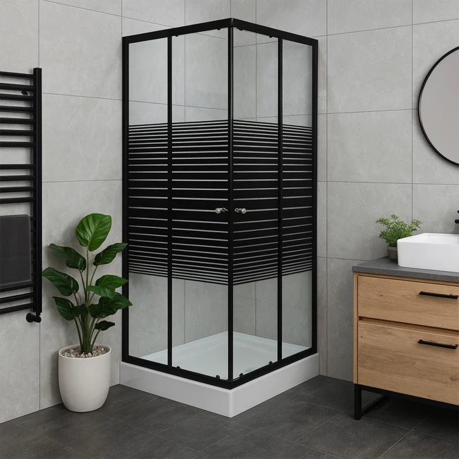 Duschhörn med Duschkar Azure 70x70 cm Kvadratisk Svart Matt