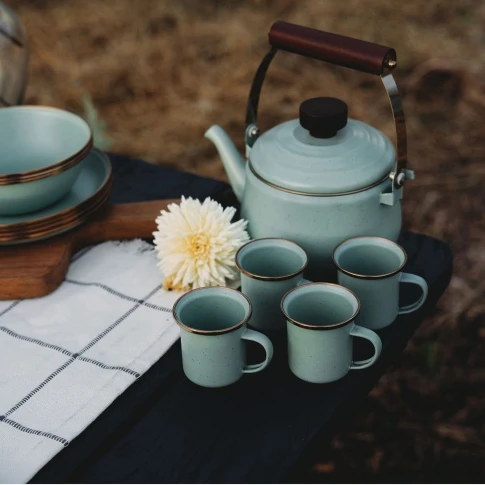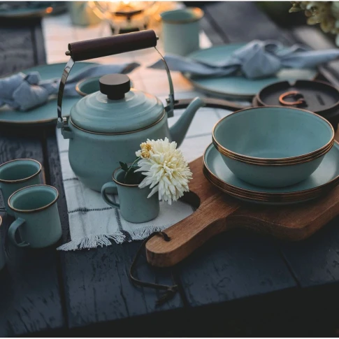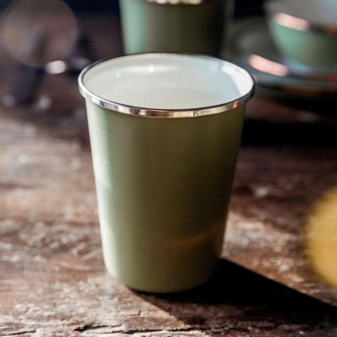 Material: Emalj, Stål, FSC-Certifierad Naturlig Valnöt