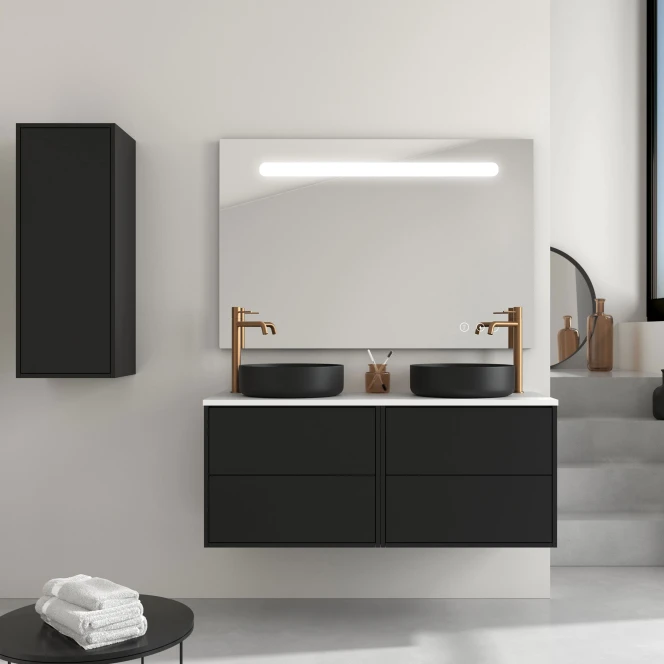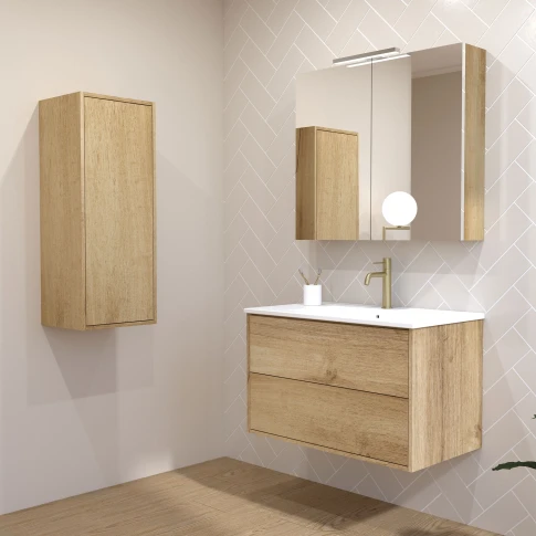 Tvättställsskåp Odea Trä Ljus Matt 60 cm med Handfat Vit Blank