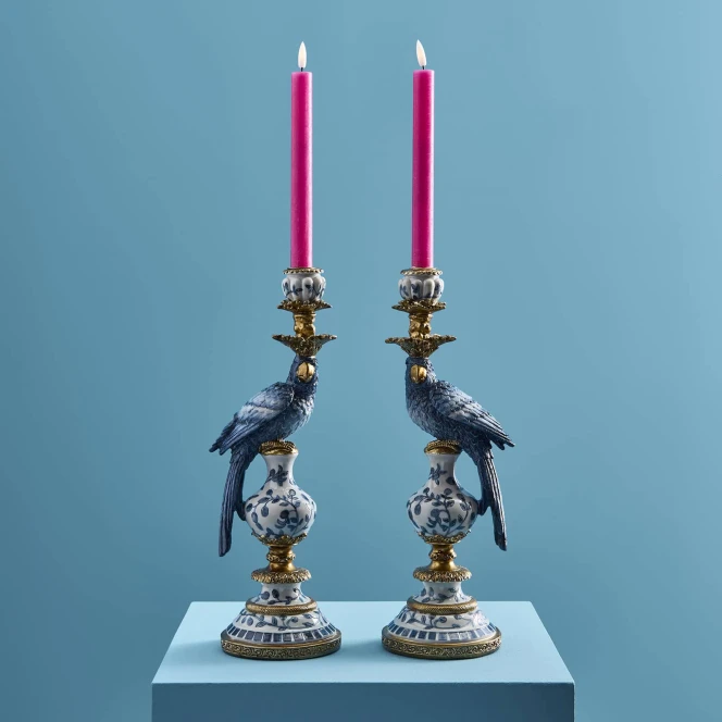 Werner Voss Set med Ljusstakar 2 st Parrot Blå, Guld