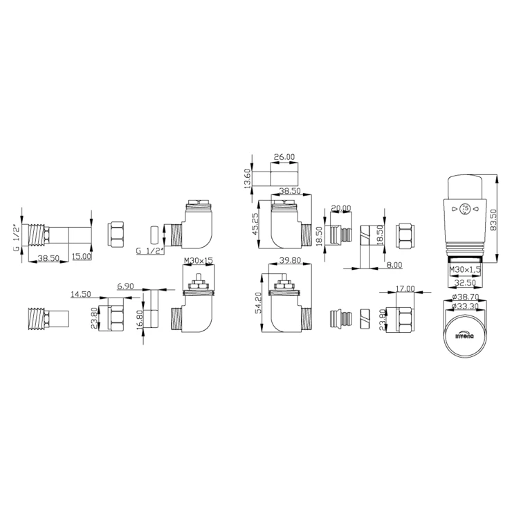 Praktiskt axiellt termostatset för anslutning av bad­rums­radiatorer till koppar- (15 mm) eller PEX-installationer (16 mm).