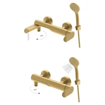 Lore badkarsblandare i matt guld kombinerar lyxig estetik med hög funktionalitet. Med en tålig PVD-ytbehandling och elegant design blir den ett självklart val för moderna badrum.