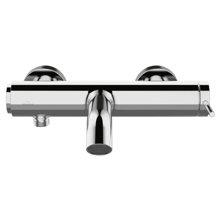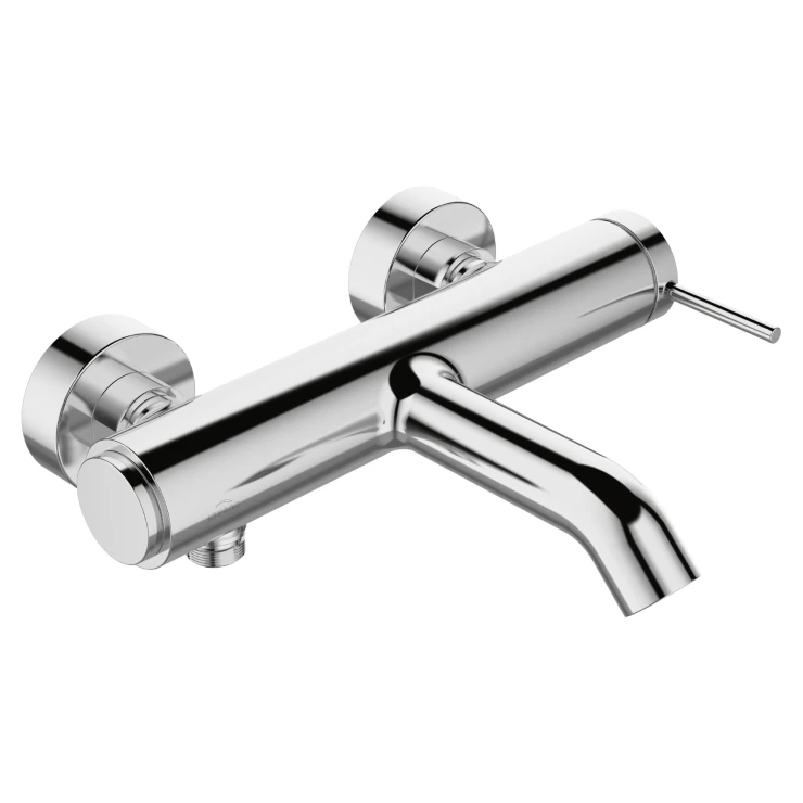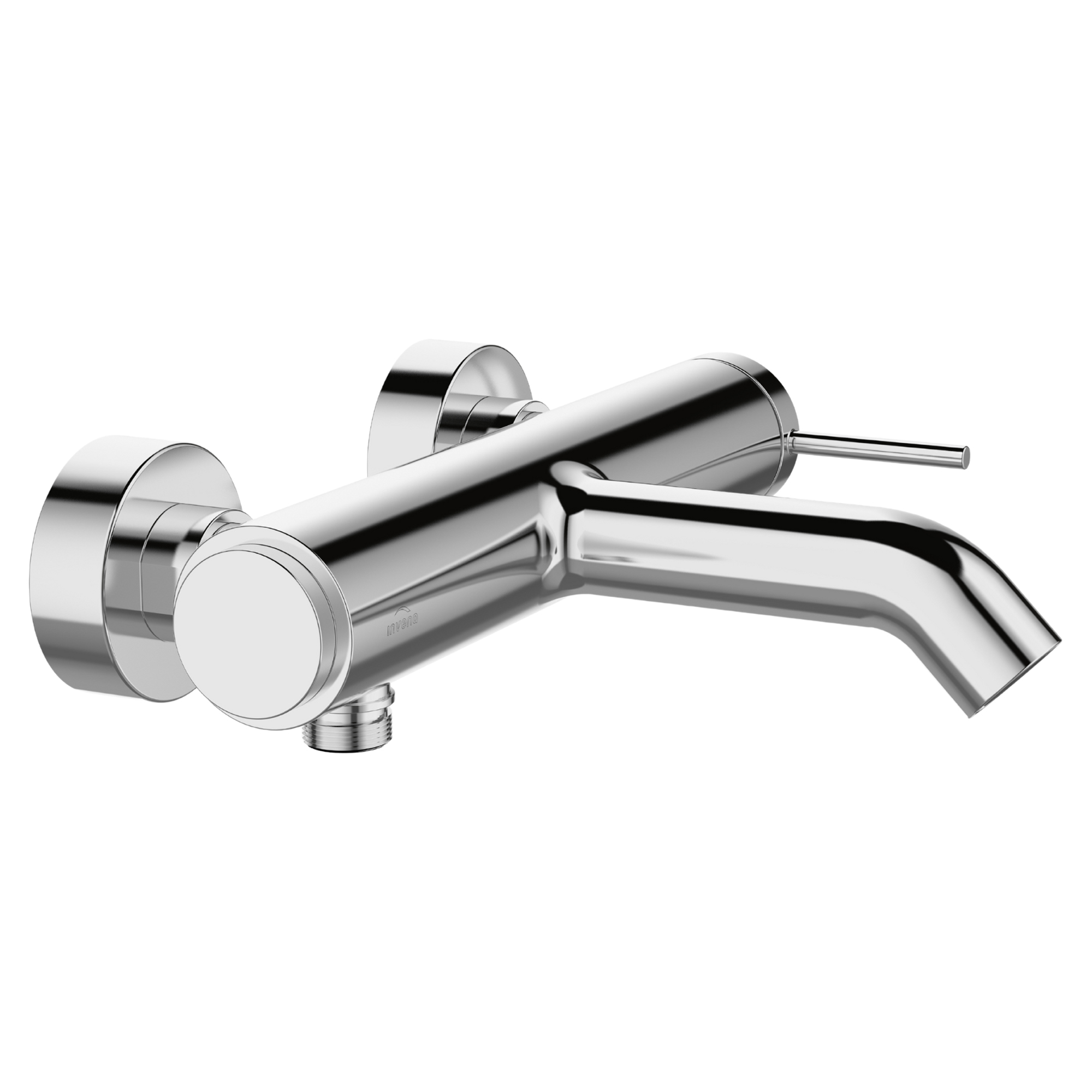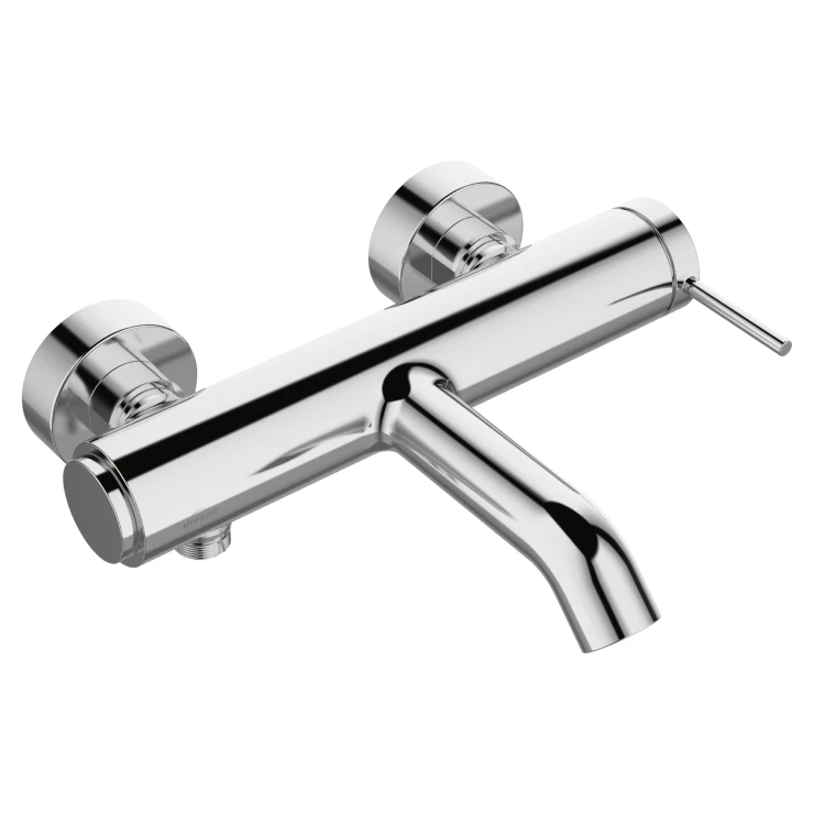 Stilren väggmonterad badkarsblandare med enkelgrepp för smidig kontroll av temperatur och vattenflöde.