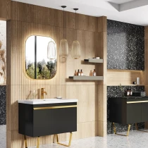 • Badrumsmöbler från Unity-kollektionen kan komplettera alla badrumsserier. Raka linjer på skåpen ger frihet att kombinera alla element med andra kollektioner, beroende på dina preferenser. Kollektionen erbjuder väggskåp, pelare och praktiska hyllor som passar i alla badrum, oavsett storlek.