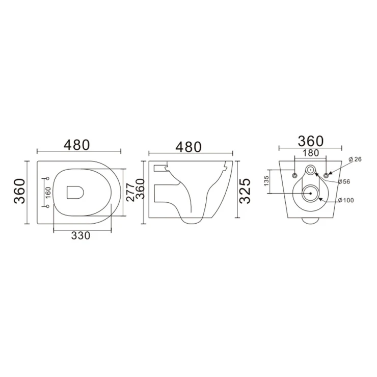 • Montering: För vägghängd toalett, anpassad för stödvägg eller gipsskiva-konstruktion.