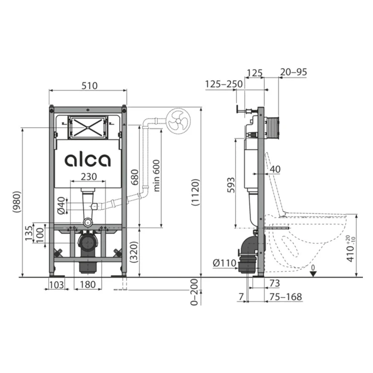 • Anslutning: För vägghängda toaletter med anslutningsavstånd på 180 mm eller 230 mm.