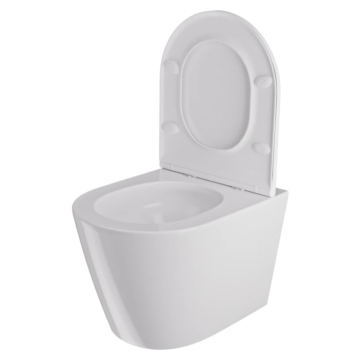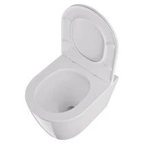 • Den upphängda toalettskålen Mila är en exceptionellt praktisk och elegant lösning för vilket badrum som helst. Tack vare den moderna designen och keramiken passar den perfekt in i interiören på ett café eller restaurang. Skålen är 48 cm djup och 36 cm bred, vilket garanterar användarkomfort, och den kantlösa teknologin gör rengöringen enklare.