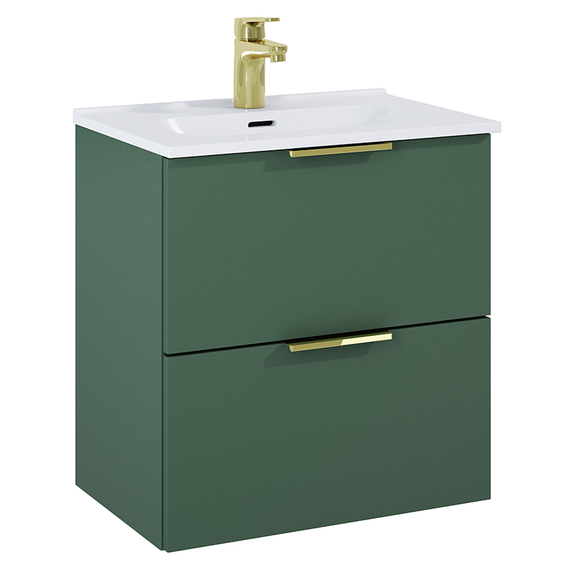 Badrumspaket Tvättställsskåp Opus Grön Matt 50 cm med Högskåp, Väggskåp & Spegel