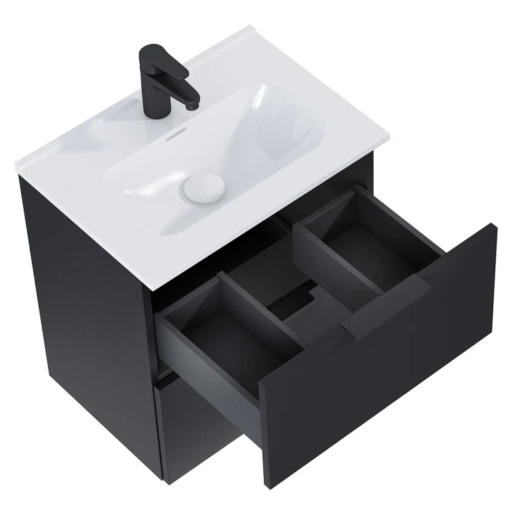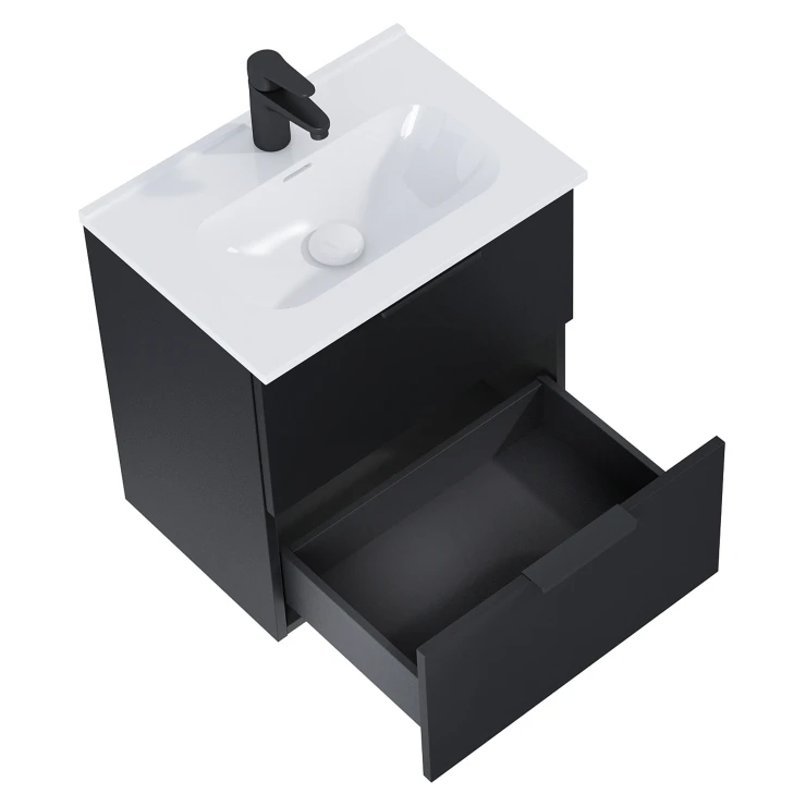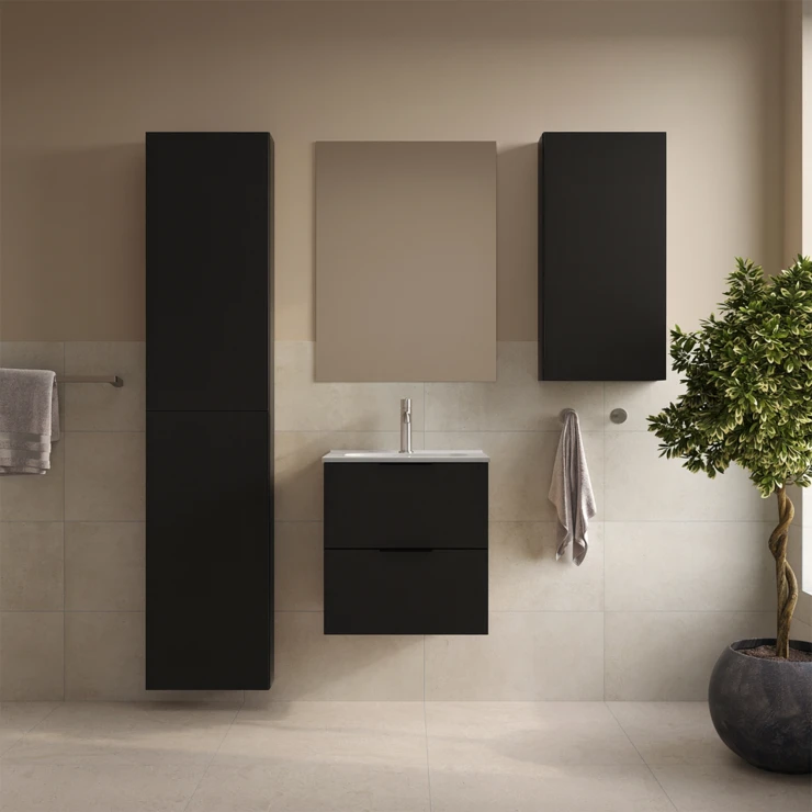 Badrumspaket Tvättställsskåp Opus Svart Matt 50 cm med Högskåp, Väggskåp & Spegel