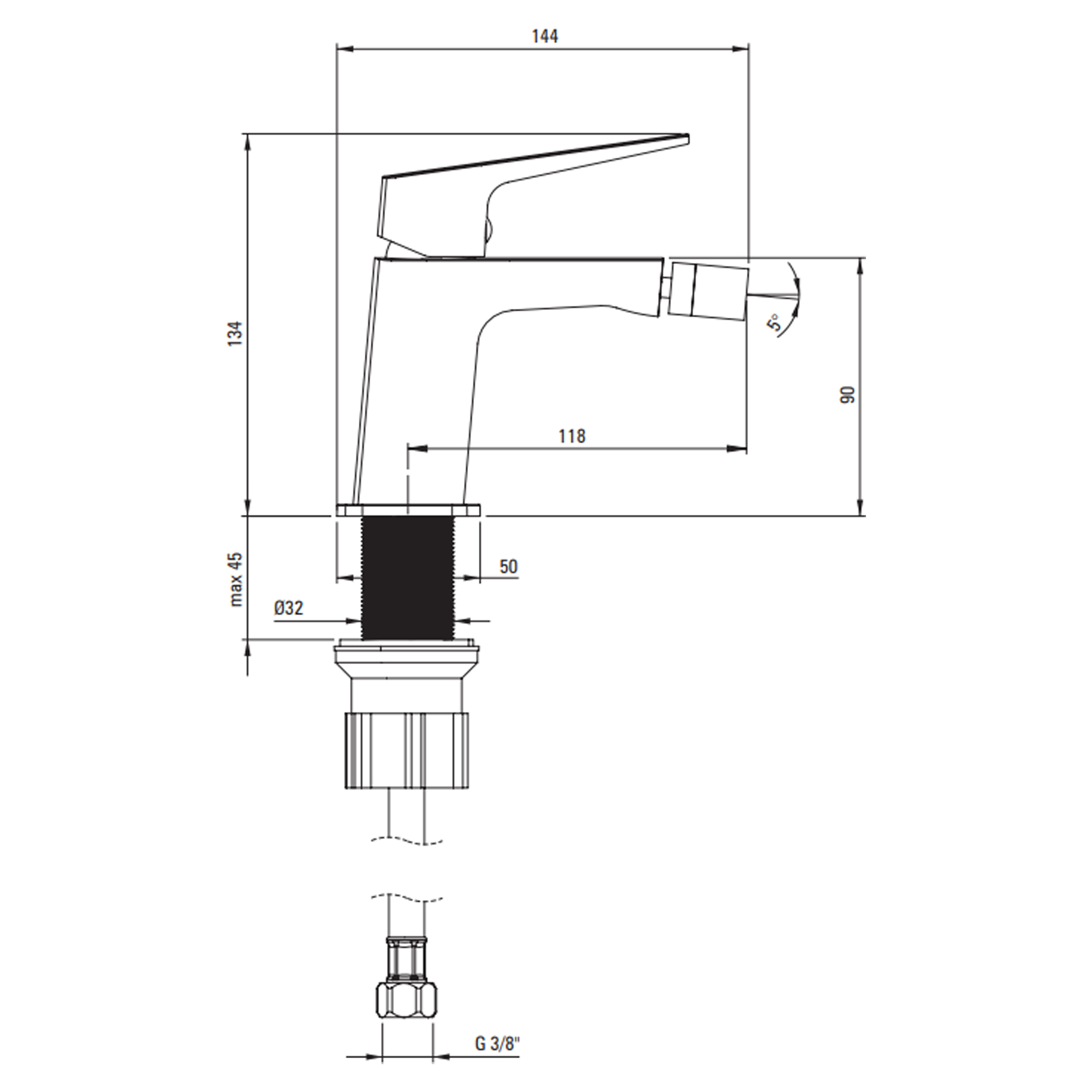 • - Blandaren är utrustad med en strålsamlare (aerator)