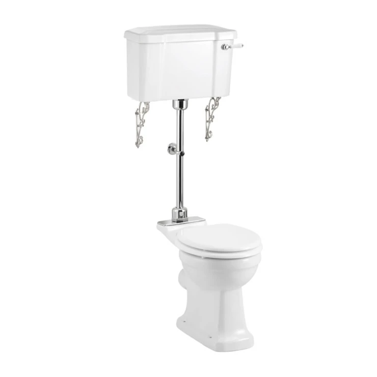 Burlington Golvstående Mediumspolande Rimless Toalett med Väggcistern & Mjukstängande Toalettsits
