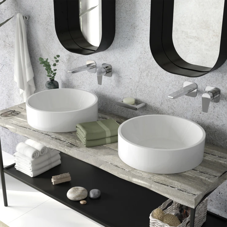 Round är en serie med hög kvalitetsstandard. Serien innehåller 8 olika storlekar: Tvättställ 42 cm, Tvättställ 58 cm, Toalettrullehållare & Toalettborste, Toalettpappershållare med Hylla, Trippelkrok, Toalettpappershållare, Tvättställ 40 cm, Toalett. Nästan alla variationer finns i blank, matt yta. Det finns 4 huvud färger i serie Round: