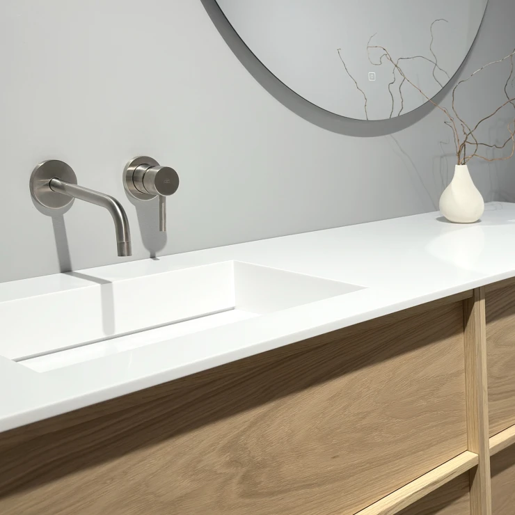 Corian N är en serie med hög kvalitetsstandard. Serien innehåller 5 olika storlekar: Tvättställ Vänster, Tvättställ Höger, Dubbelt Tvättställ, Tvättställ 60 cm, Tvättställ 80 cm. Nästan alla variationer finns i matt yta. Det finns 1 huvud färger i serie Corian N: