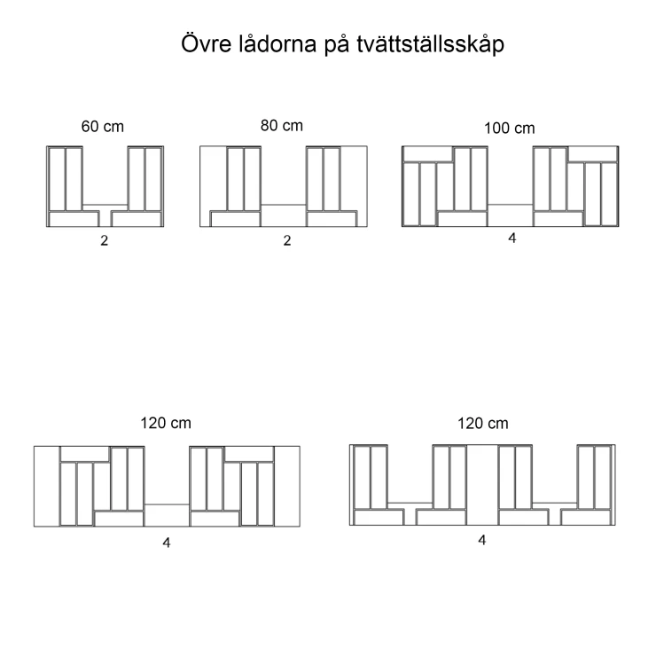 • -2 kommoder med tvättställ (utan blandarmhål);