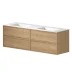 Njut av de integrerade ergonomiska handtagen av naturlig ek och gott om förvaring för dina saker i den rymliga handfatsenhetens lådor.