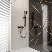 Noira utmärker sig med en lyxig kombination av matt svart och roséguldfinish, vilket ger badrummet ett exklusivt uttryck. Serien omfattar blandare för tvättställ, dusch och badkar samt matchande detaljer för en helhetslösning.