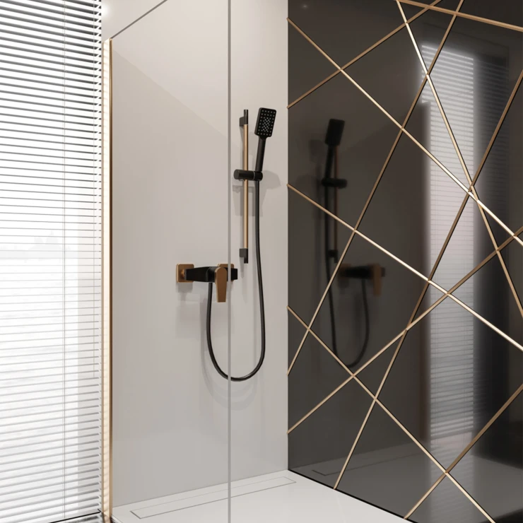 • Ytbehandling i svart/roséguld – idealisk för premiumbad­rum där designen står i centrum.