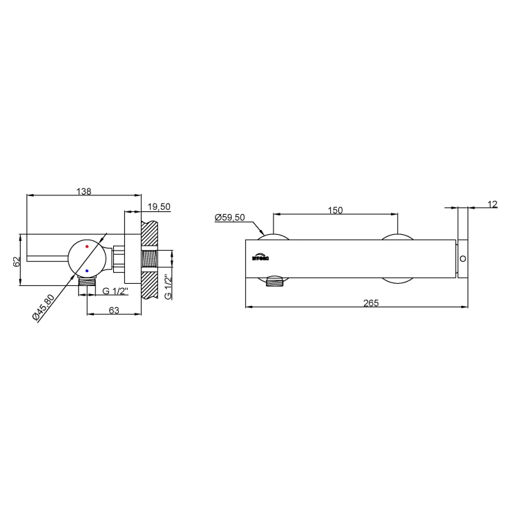 Duschblandare – Väggmonterad, Enkelgreppsdesign