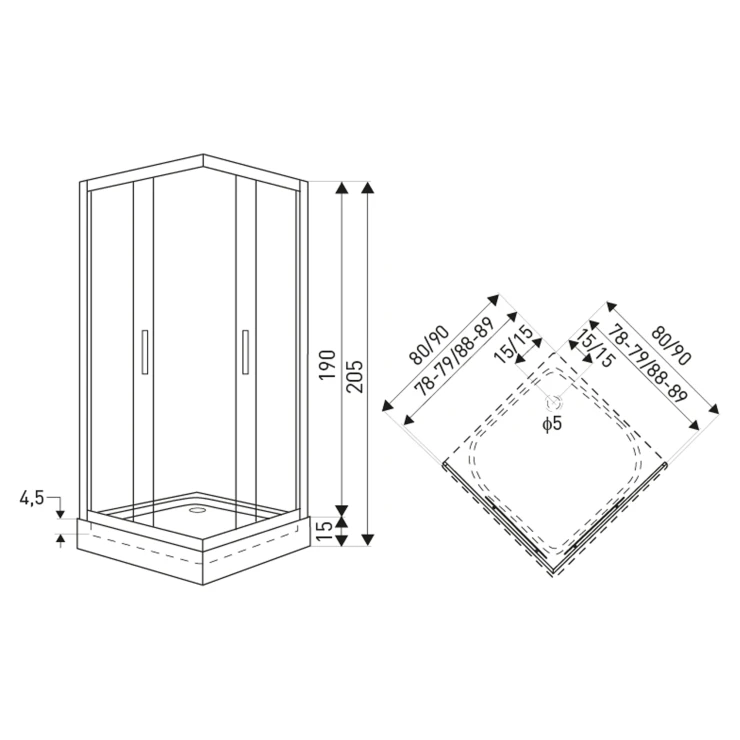 Mått: 800x800x2050mm