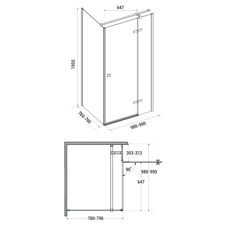 Mått: 980-990x780-790x1950mm