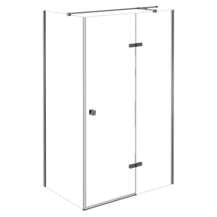 Rektangulär duschkabin. Sidan av kabinsidan är höger. 6 mm säkerhetshärdat klarglas, dörrlyftgångjärn, i jämnhöjd med glaspanelen, Gunmetal finish på metalldetaljer. Tätningsprofil ökar tätheten i hörnet.