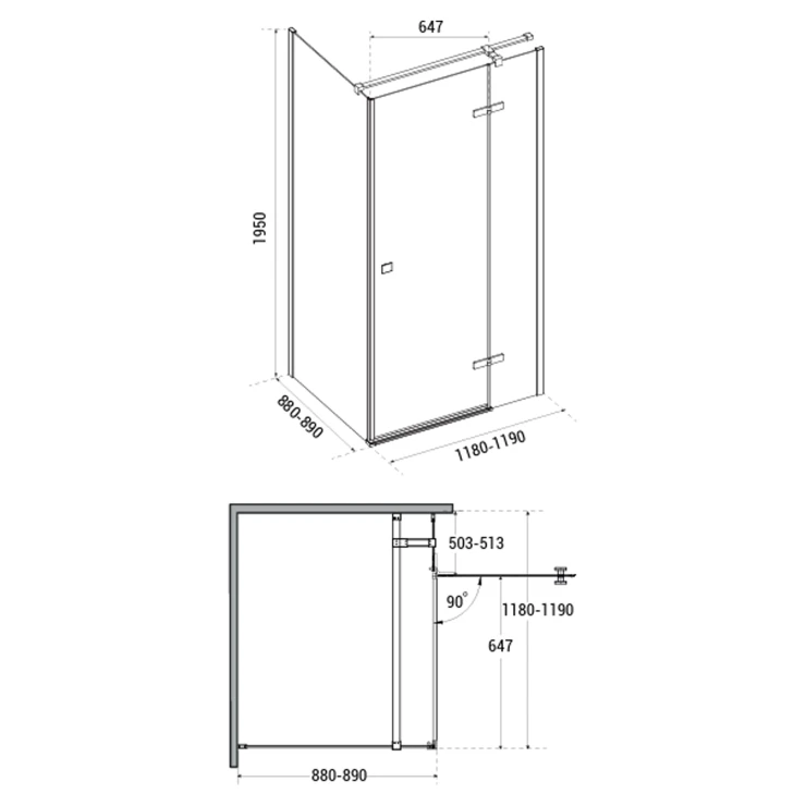 Duschhörn Torre Metallgrå 6 mm 120x90 cm Höger