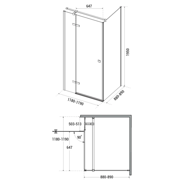 Mått: 1180-1190x880-890x1950mm