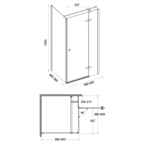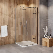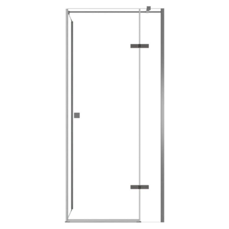 Fyrkantig duschhörna. Sidan av kabinsidan är höger. 6 mm säkerhetshärdat klarglas, dörrlyftgångjärn, i jämnhöjd med glaspanelen, Gunmetal finish på metalldetaljer. Tätningsprofil ökar tätheten i hörnet.