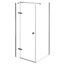 Fyrkantig duschhörna. Sidan av kabinsidan är vänster. 6 mm säkerhetshärdat klarglas, dörrlyftgångjärn, i jämnhöjd med glaspanelen, Gunmetal finish på metalldetaljer. Tätningsprofil ökar tätheten i hörnet.