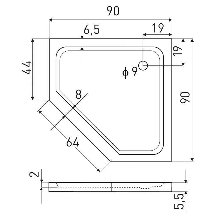 Duschkar Nefud Slim 90x90 cm Pentagonal Vit Blank