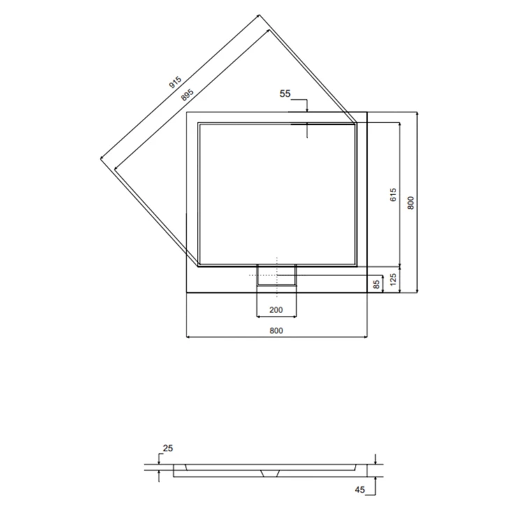 Mått: 800x800x45mm