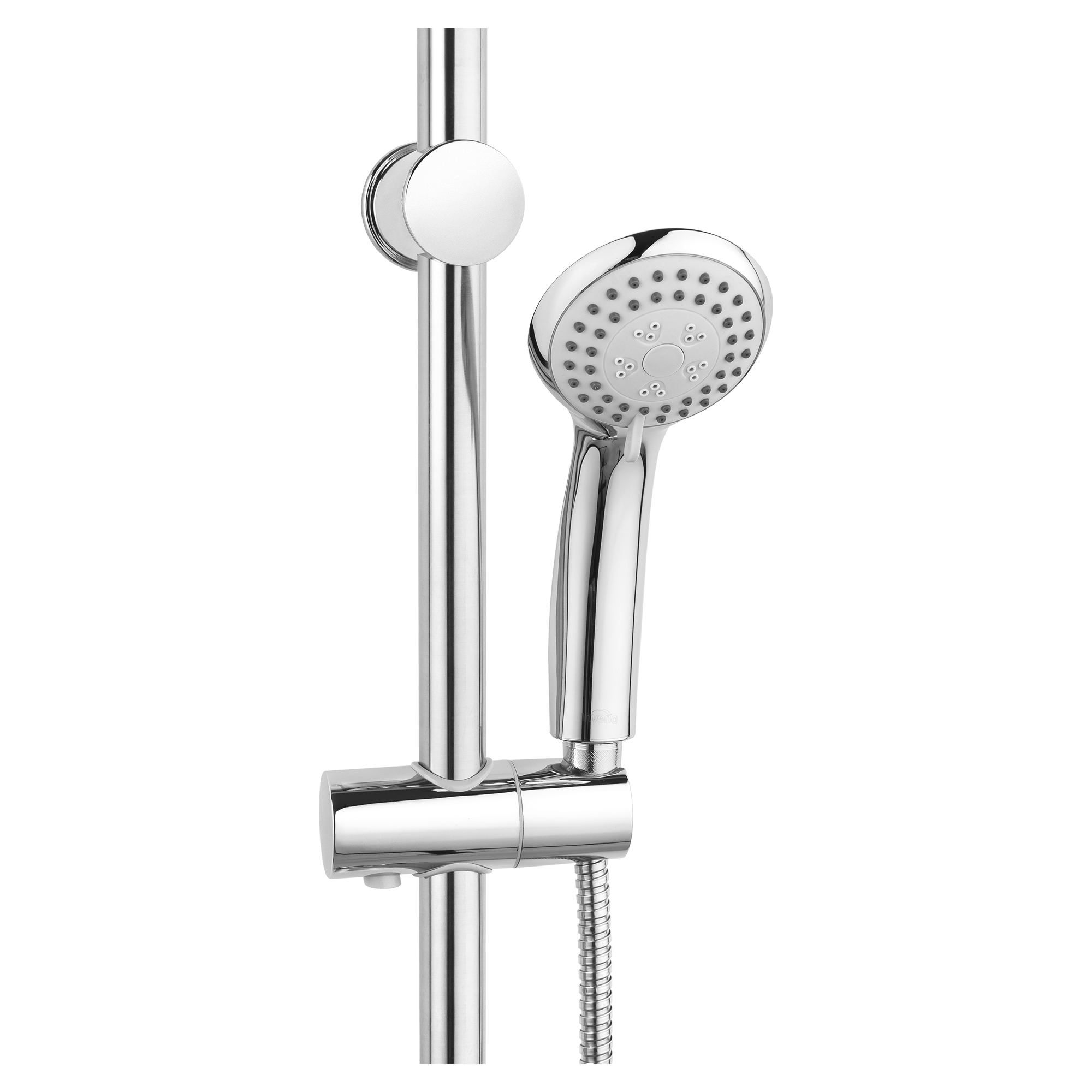 Praktiskt och elegant duschset med duschstång (höjd 66 cm) och handdusch med tre funktioner – normal, blandad och hydromassage.