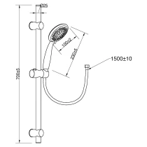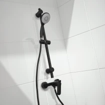 Modernt duschset med duschstång (höjd 70 cm) och handdusch med tre funktioner – normal, blandad och hydromassage.