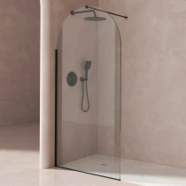 Med största finess förnyar Amelise fast vägg de klassiska linjerna genom att anta en rundad form. Klart SECURIT-glas, 8 mm tjockt, med antikalkbehandling. Finns i storlekarna: 100 och 120 cm