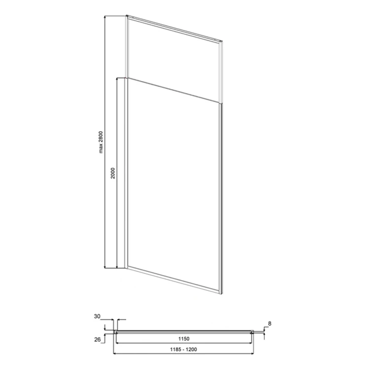 Mått: 1185-1200x26x2000-2800mm