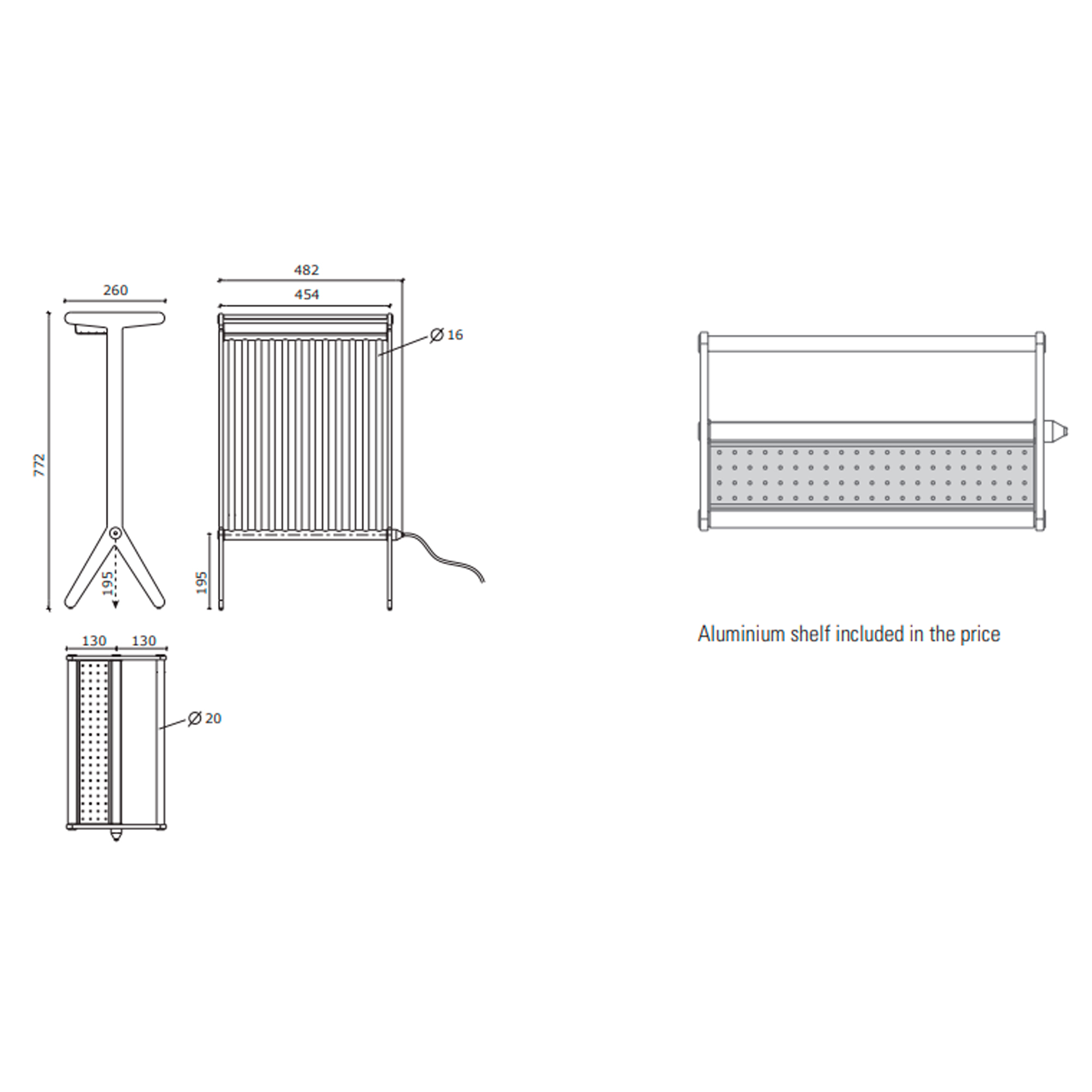 • - Aluminiums hylla ingår i priset