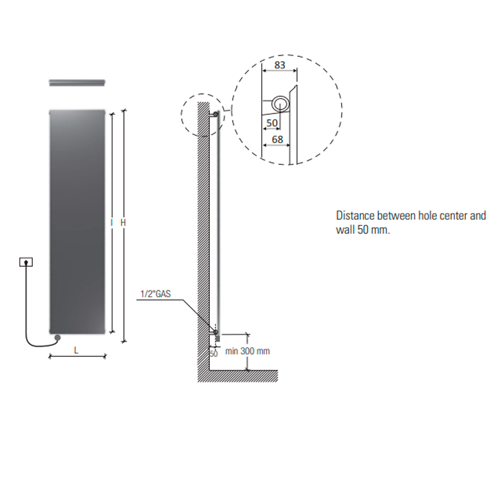 • Avstånd mellan hålcentrum och vägg: 50 mm