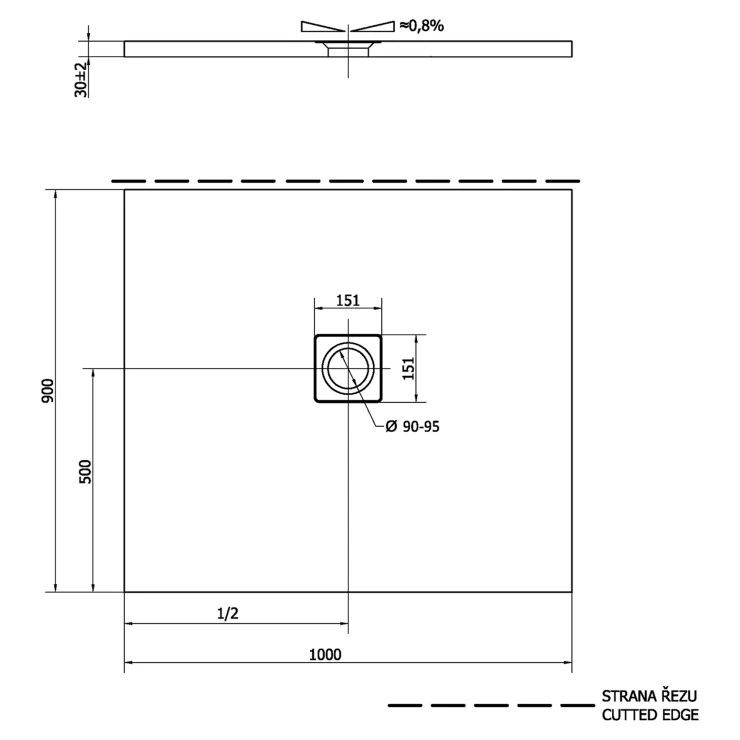 Gjutmarmor Duschkar Marcelle 100x90 cm Grå Matt