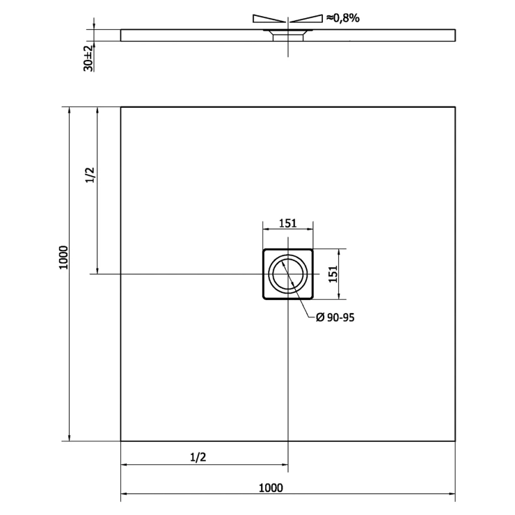 Gjutmarmor Duschkar Struktura 100x100 cm Vit Blank