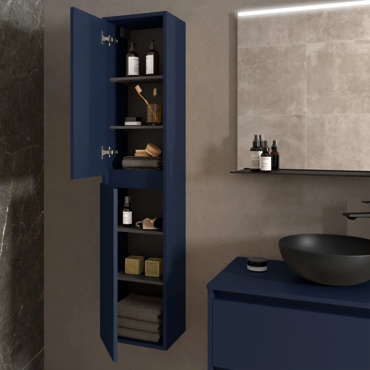 • Högskåp ur Flint-serien är designat för att ge både elegans och praktisk förvaring i badrummet.