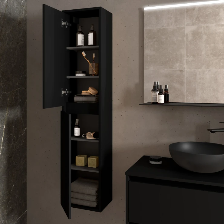 • Högskåp ur Flint-serien är designat för att ge både elegans och praktisk förvaring i badrummet.