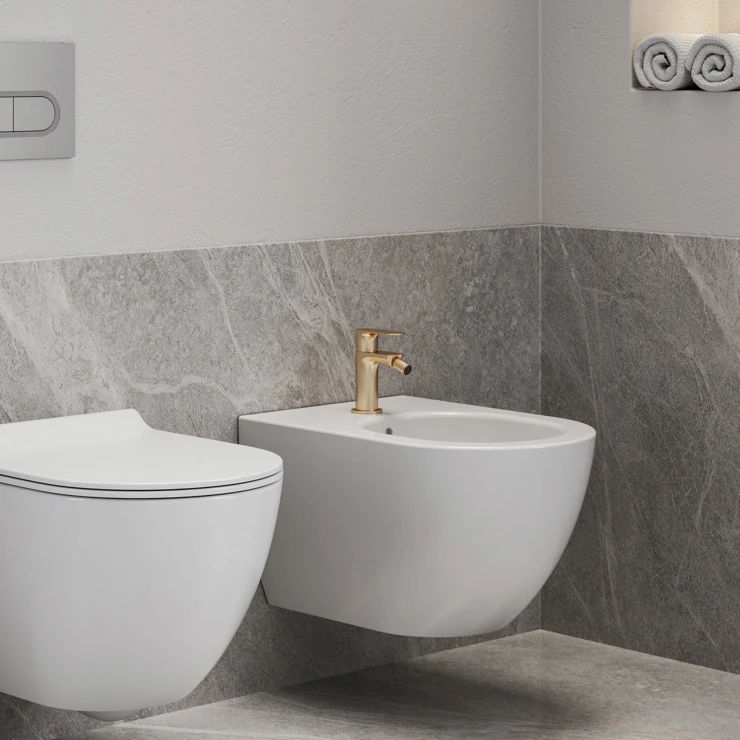 Eleganta bidéblandare för montering på bänk, dold perlator med EcoFlow-funktion.