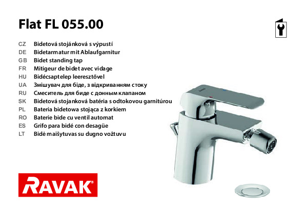 Ravak Bidéblandare Flat Krom Blank med Bottenventil