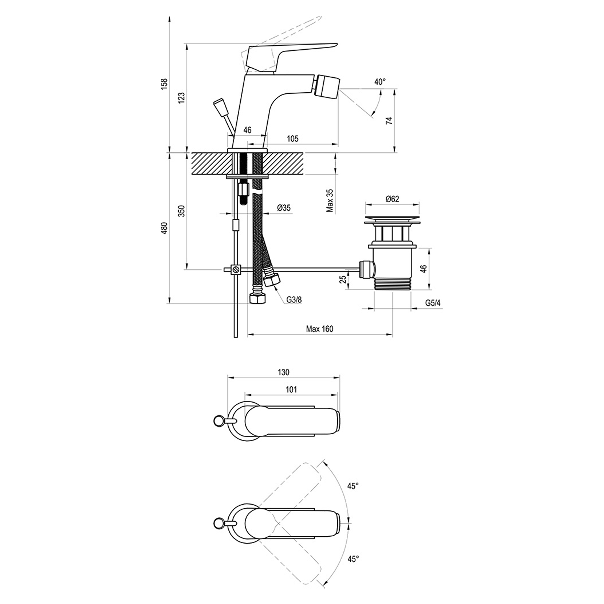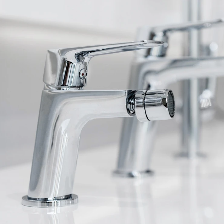Klassisk bidéblandare för montering på bänk, med lyftventil. I kromfinish.