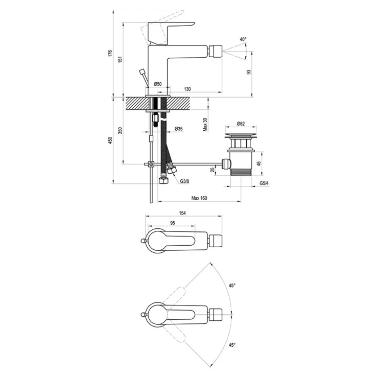 Puri bidéblandare för montering på bänk med ClickClack-ventilset.