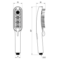 Handduschen är designad för enhandsanvändning. De fyra strållägena växlas smidigt med ett reglage eller en knapp på baksidan.