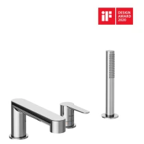 Puri badkarsblandare för däckmontering, trehåls, med vridomkastare och duschset.