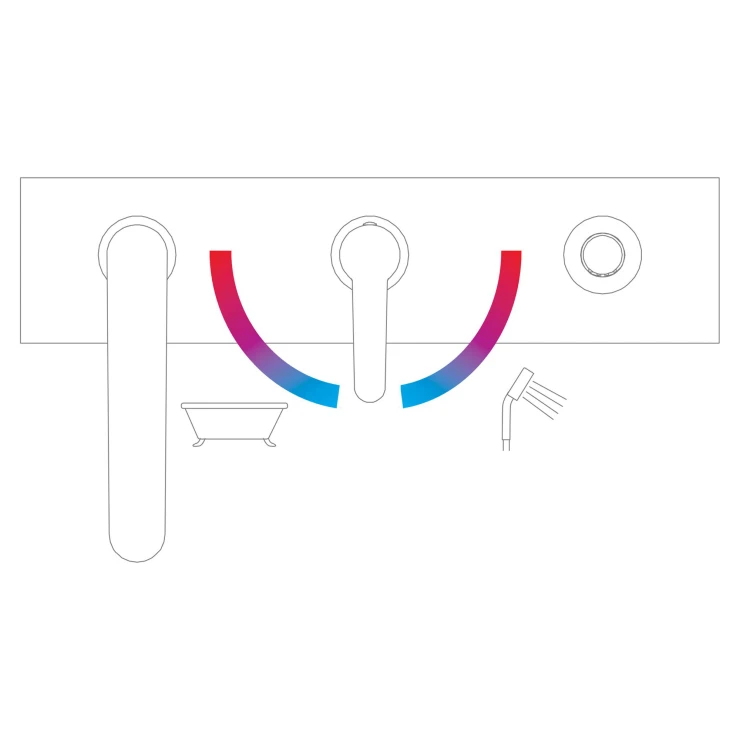 Puri trehålsblandaren är utrustad med en speciell vridpatron med omkastare för bad/dusch. Genom att vrida spaken åt höger (dusch) eller åt vänster (bad) regleras endast vattentemperaturen, medan vattenflödet förblir konstant.