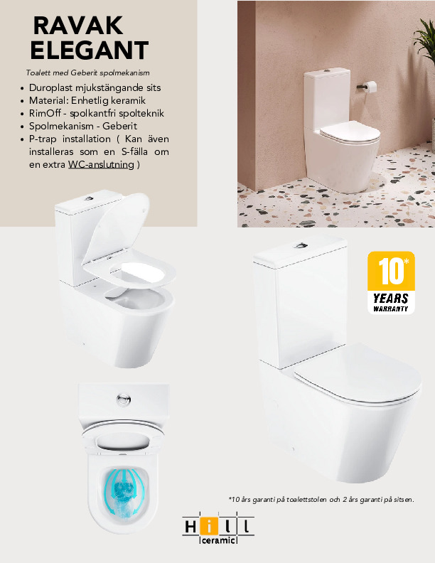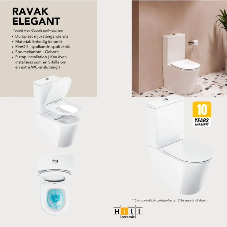 Ravak Toalett Elegant Vit Blank med Geberit Spolmekanism