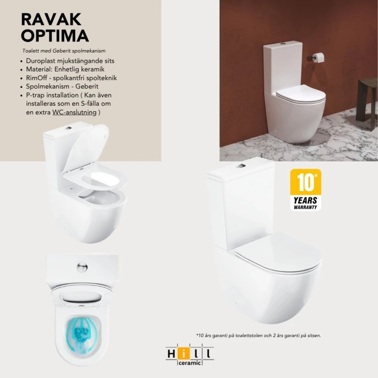 Ravak Toalett Optima Vit Blank med Geberit Spolmekanism